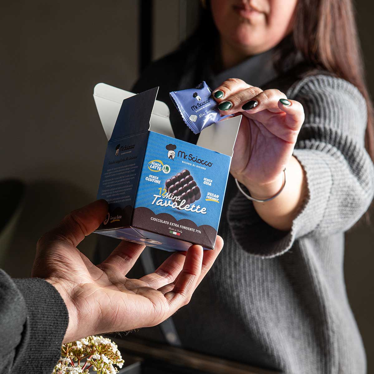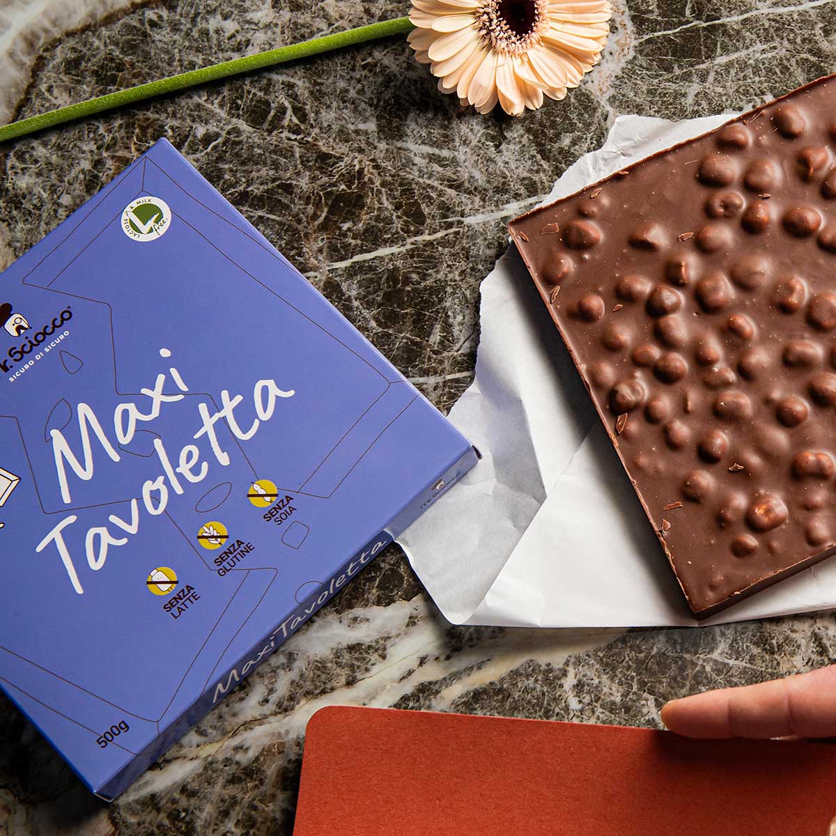 Scegliere un cioccolato senza glutine e soia significa spesso fermarsi un attimo in più prima di decidere. Per questo Mr.Sciocco ha creato una selezione in vari gusti e formati, per continuare a gustare il cioccolato con serenità.